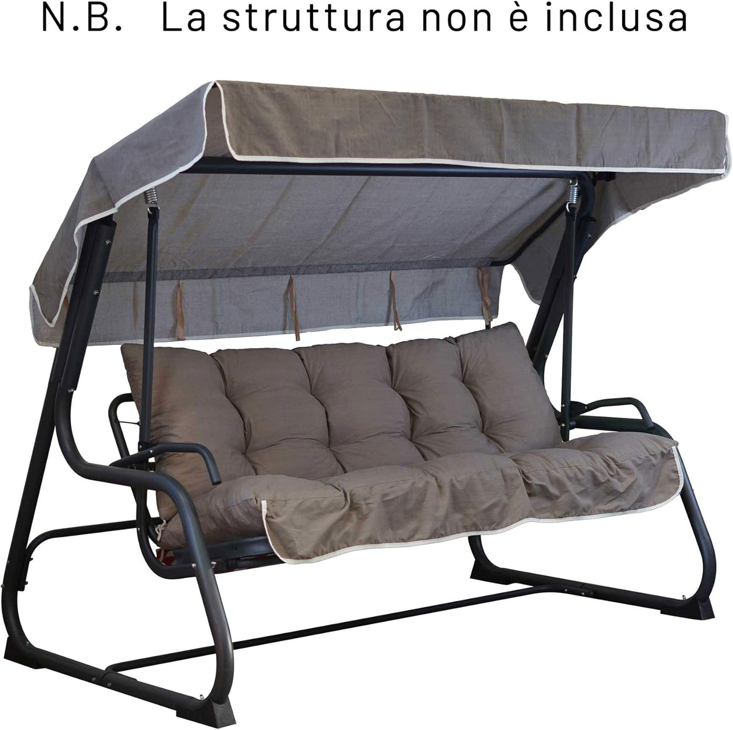 Struttura in ferro verniciato a polvere colore grigio scuro. Set Tettuccio Cuscini per Dondolo Panama 34 Posti BEIGE - 06649. Set tettuccio e cuscini di ricambio per dondolo Panama_06617.