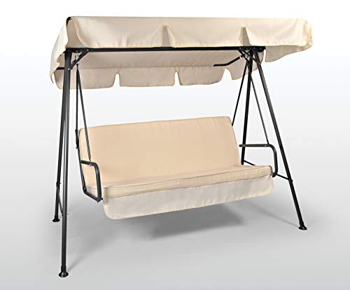 Beige Tetto Dondolo 3 Posti Cotone Panama Cm 240x165 Compreso Balza