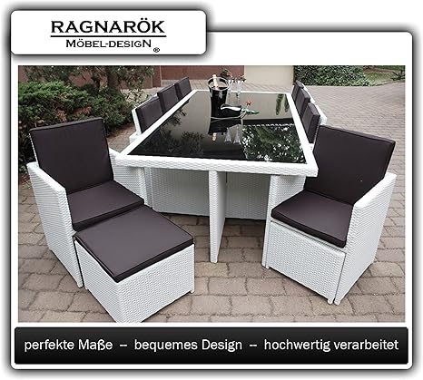 Ragnarok Mobeldesign Set Tavolo E Sedie Da Giardino In Rattan Sintetico Include Tavolo 8 Sedie 4 Sgabelli Piano In Vetro E Cuscini Colore Bianco Marca Tedesca Con Produzione Propria Amazon It Giardino