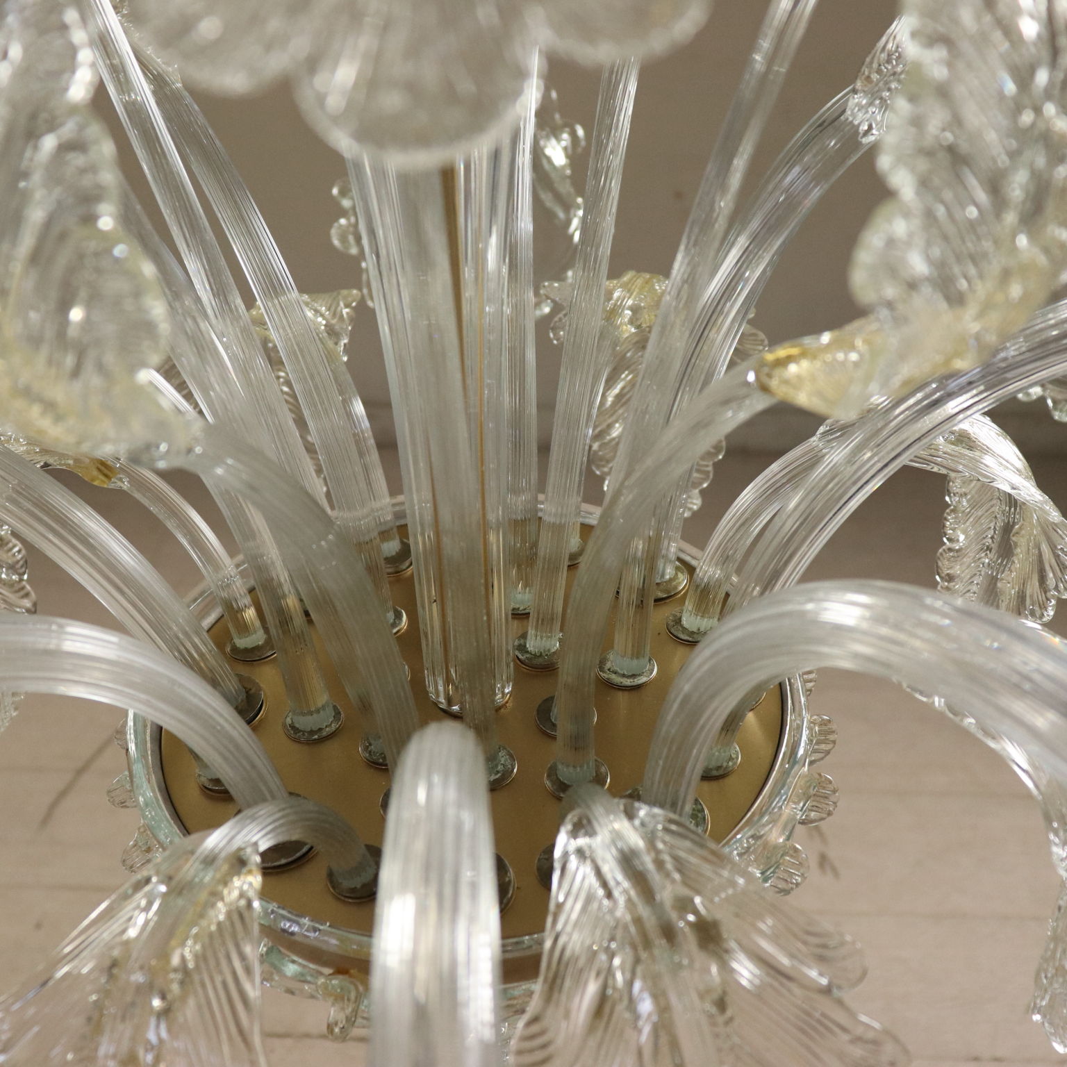 Lampadario degli anni 50 stile Venini in vetro di Murano Chandelier from the 1950s Venini style in Murano glass. Costituito da una struttura metallica che sostiene svariati elementi in vetro trilobato. Lampadario in vetro di Murano risalente agli anni 50.